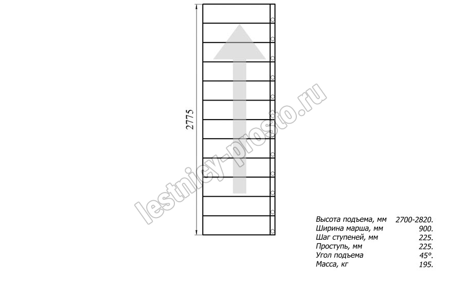 Высота лестницы 2700 - 2820 мм