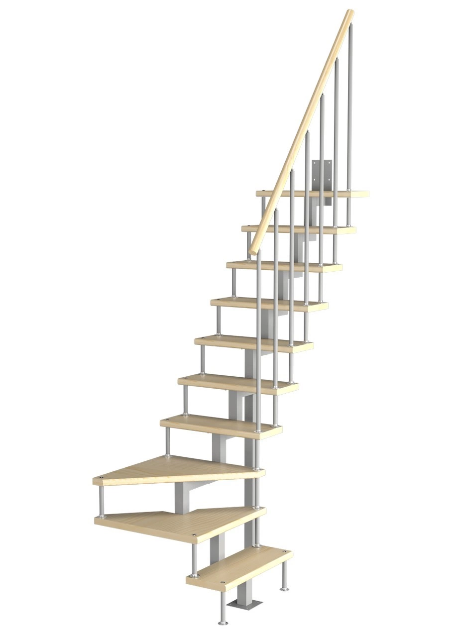 Модульная малогабаритная лестница Компакт 2250-2475, Серый, Сосна, Крашеная