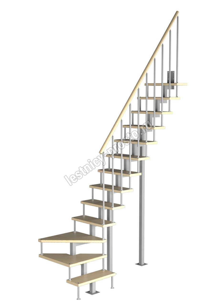 Модульная малогабаритная лестница Компакт 2925-3150, Серый, Лиственница, Нержавеющая сталь