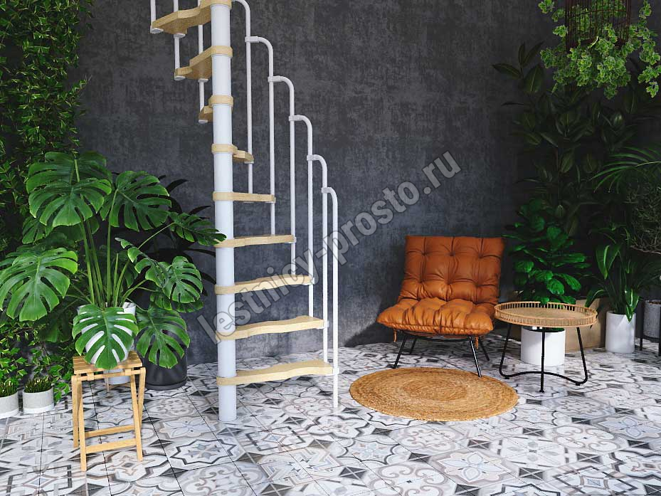 Винтовая лестница PROSTO MINI белая, 70×140 см, h299-322 см