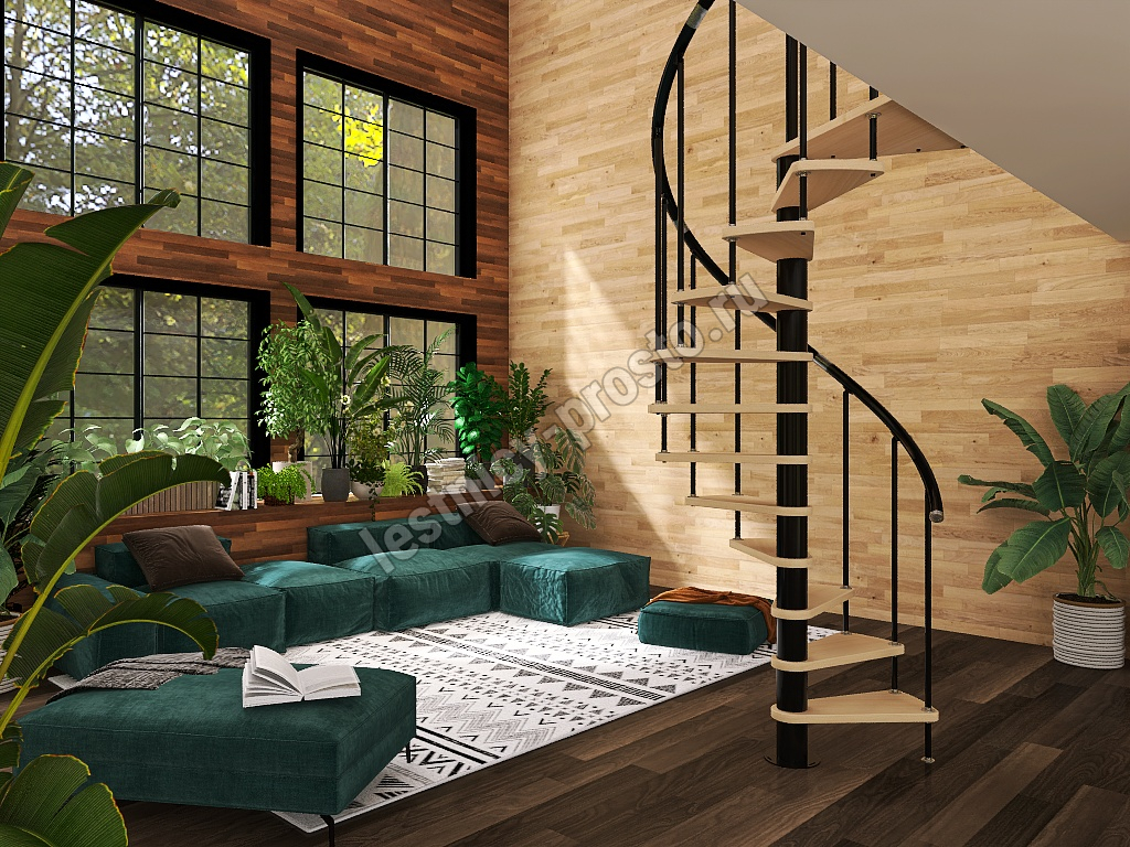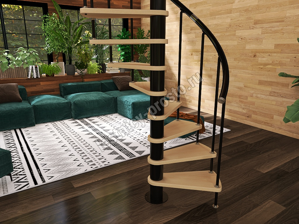 Винтовая лестница Prosto Spiral Black D120см, h325.7-369.8 см, бук