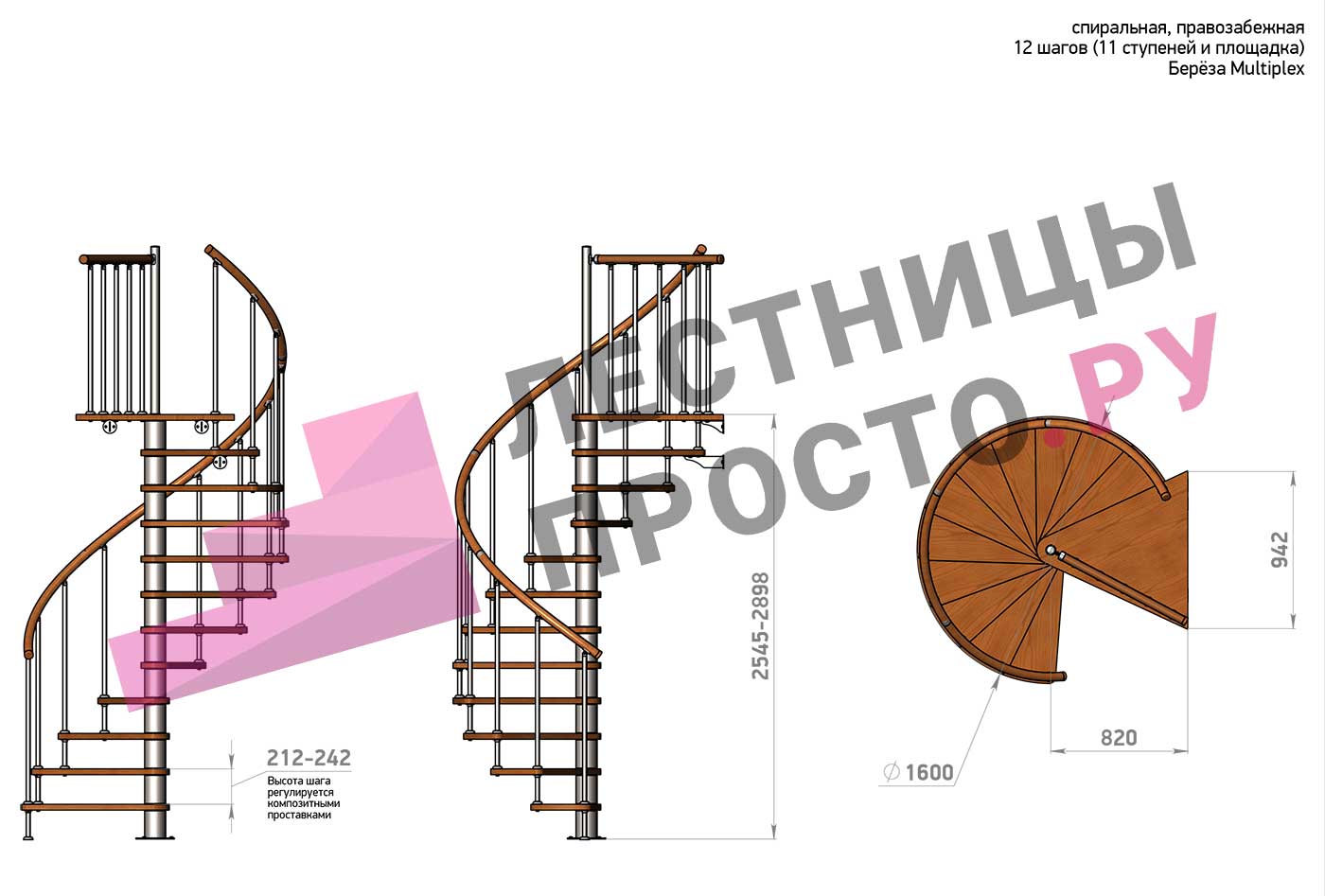 Высота шага 212 - 242 мм