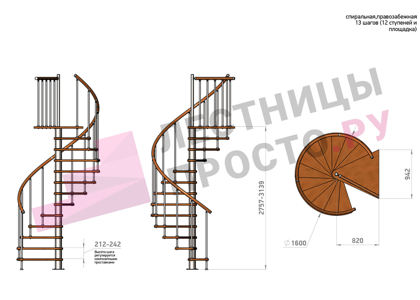 Высота ступеней регулируется с шагом 3 мм. в пределах 212-242 мм., благодаря чему, лестница прекрасно подгоняется под необходимую высоту.