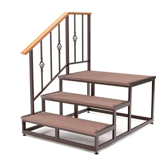 Стальные стойки Ф25мм (по одной на ступень) + ПВХ поручень Ф50.
