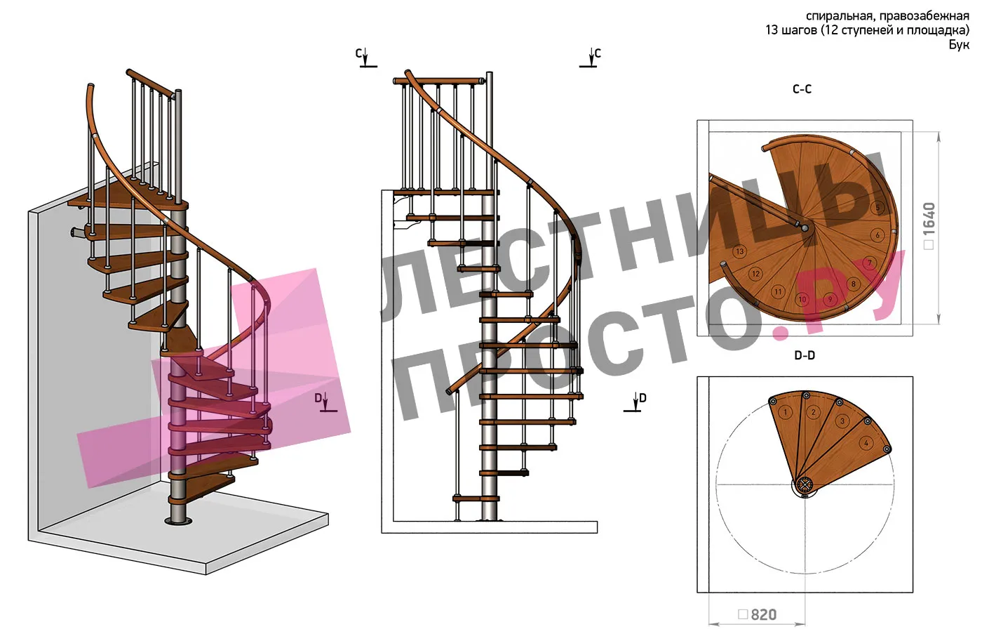 | Винтовая лестница Prosto Spiral White D120см, h282.2-326,3 см, бук |
