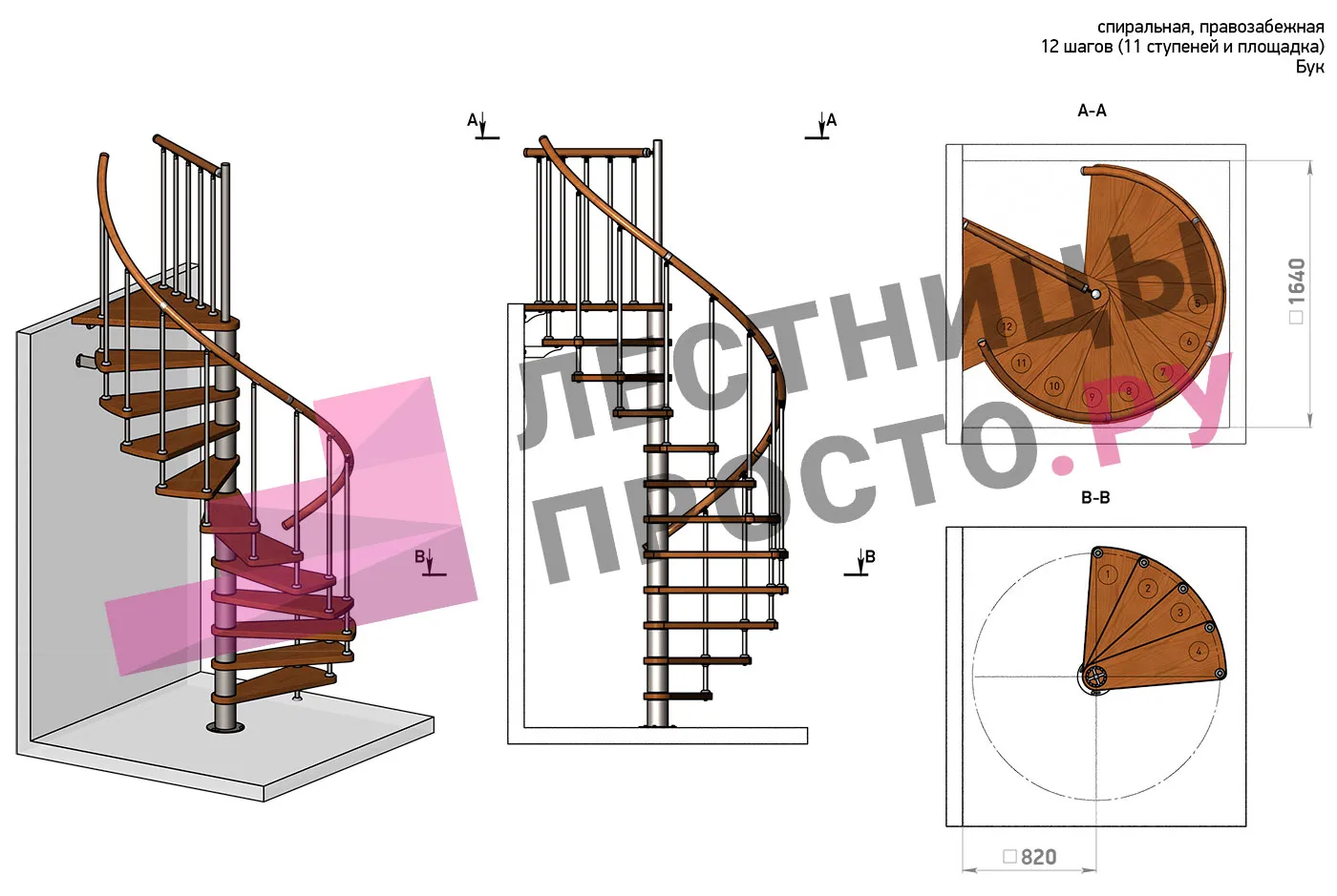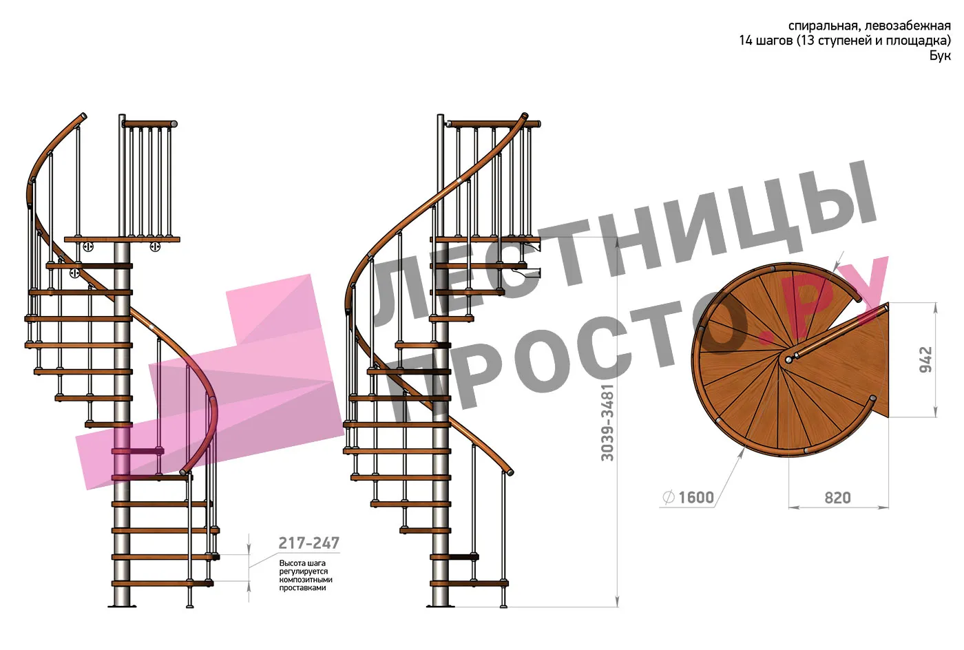| Винтовая лестница Prosto Spiral White D160см, h325.7-369.8 см, бук |