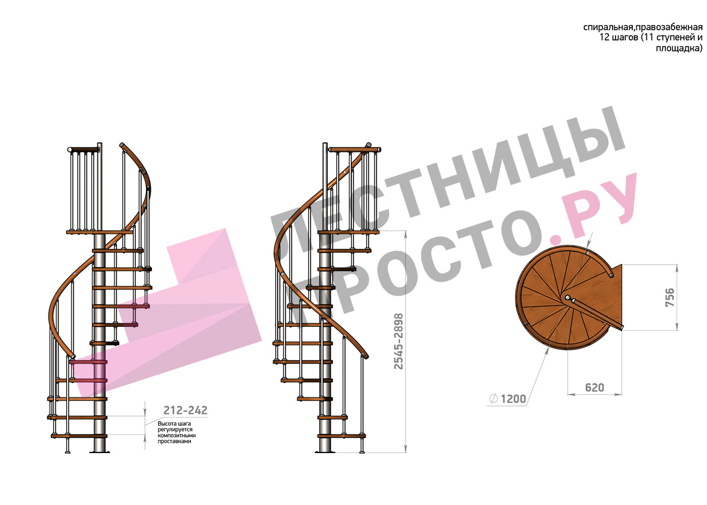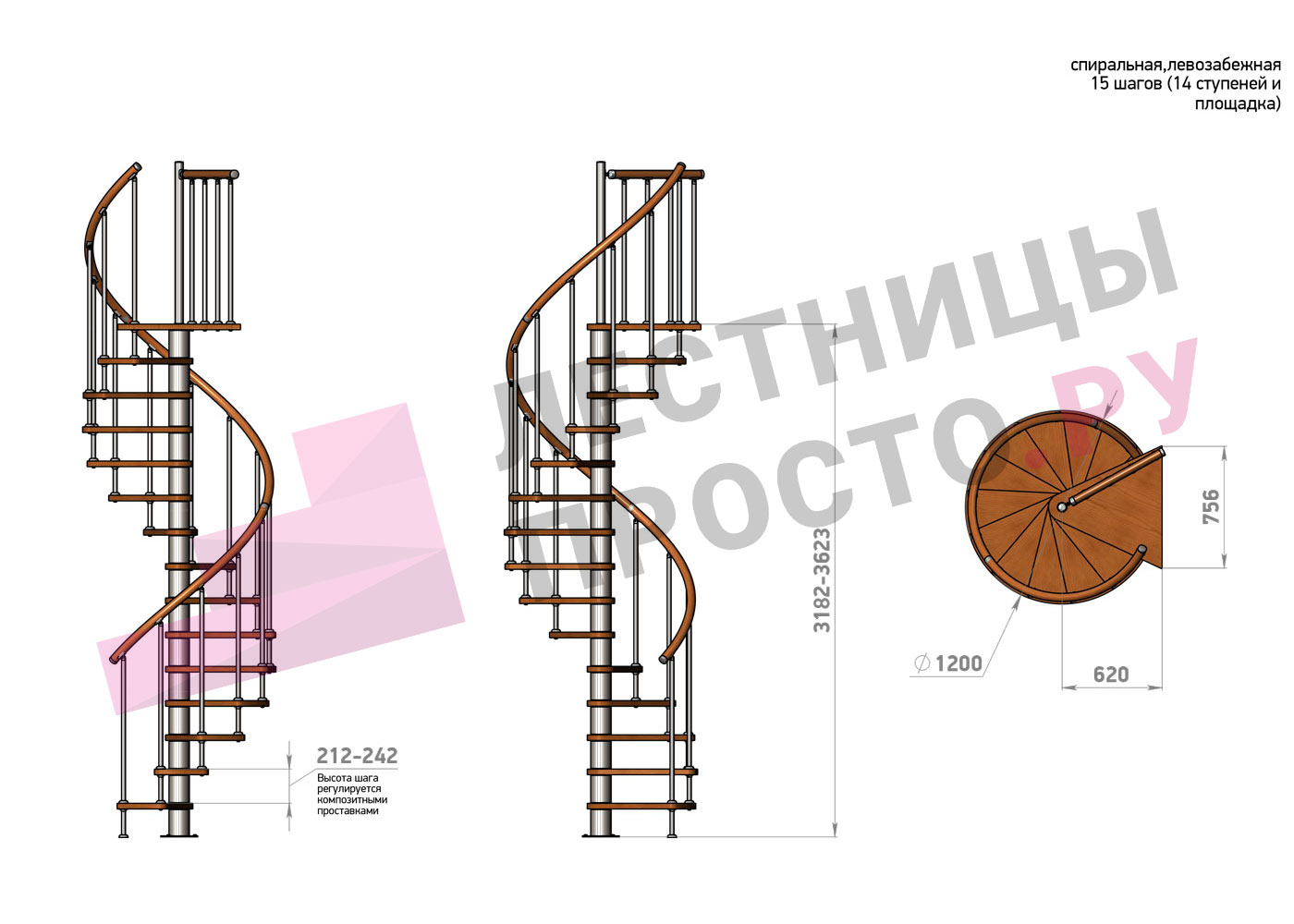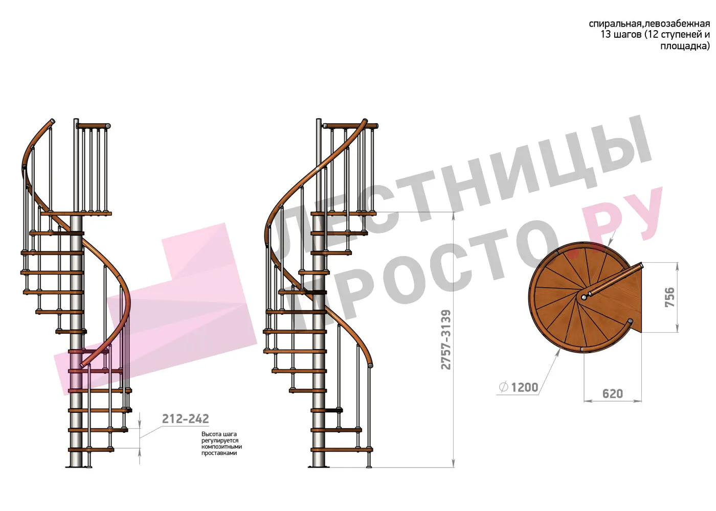 | Винтовая лестница Prosto Spiral White D120см, h275.7-313,9 см |