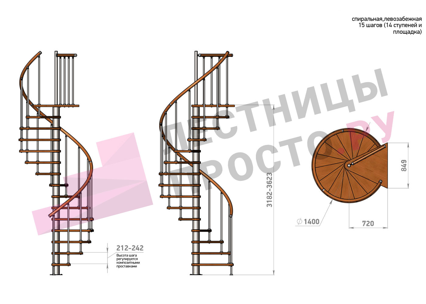 | Винтовая лестница Prosto Spiral White D140см, h254.5-289.8 см |