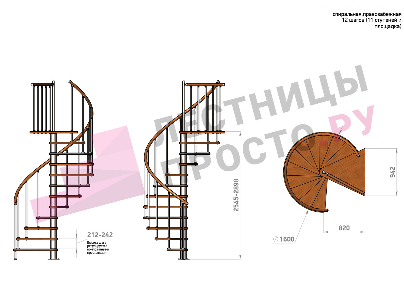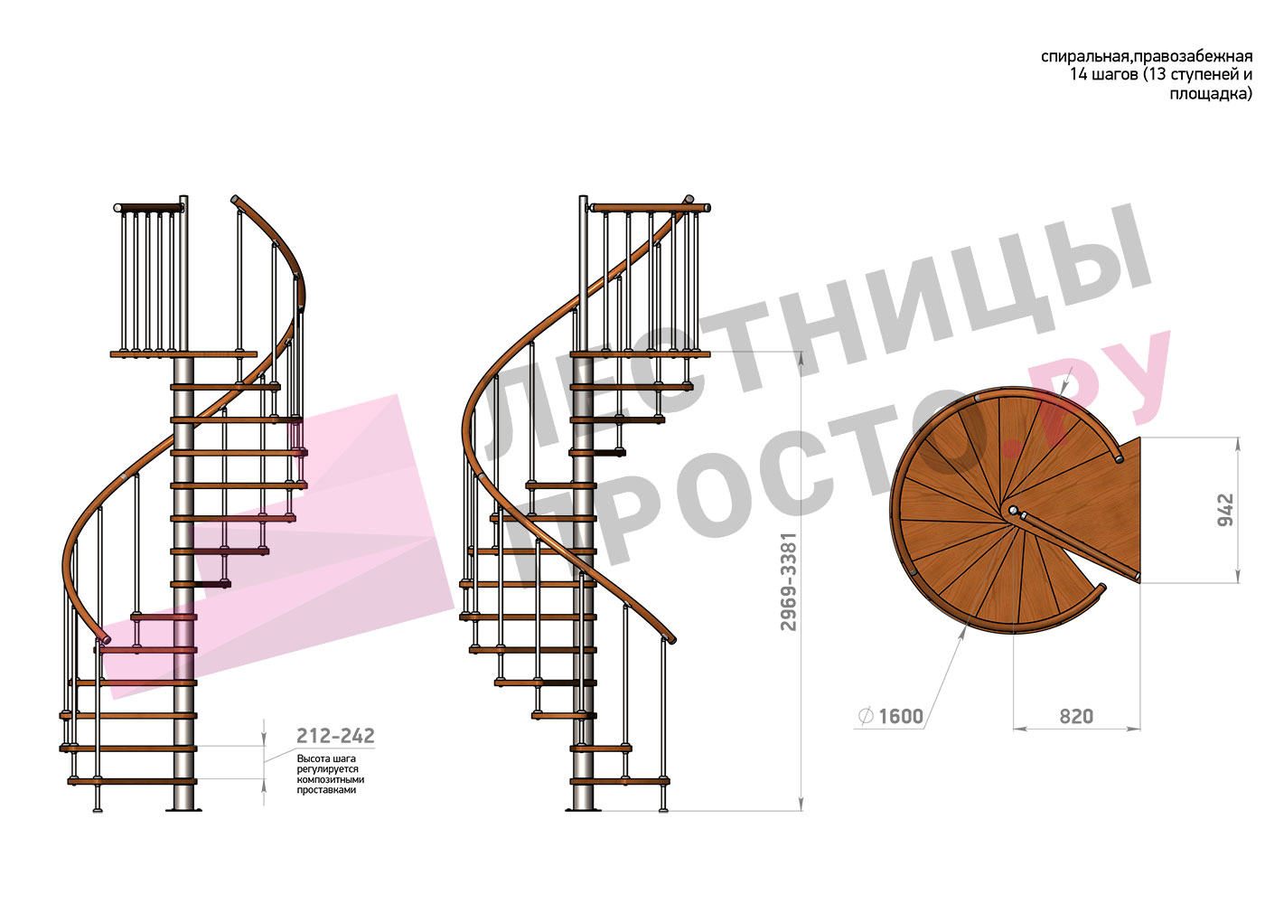 | Винтовая лестница Prosto Spiral White D160см, h275.7-313.9 см |