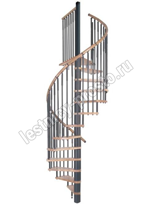 Винтовая лестница SPIRAL WOOD d120 см. чёрная, лакированный дуб