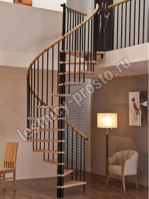 Поручень лестницы изготовлен из массива дуба в тон ступеням. Ступени и поручень покрыты износостойким защитным лаком.